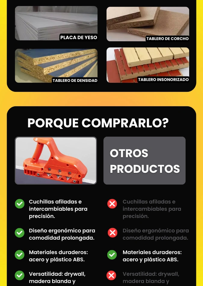 Sí, además del drywall, también funciona con materiales como superboard, MDF delgado y plástico. Aunque su uso principal es en placas de yeso, su versatilidad lo hace ideal para proyectos similares.