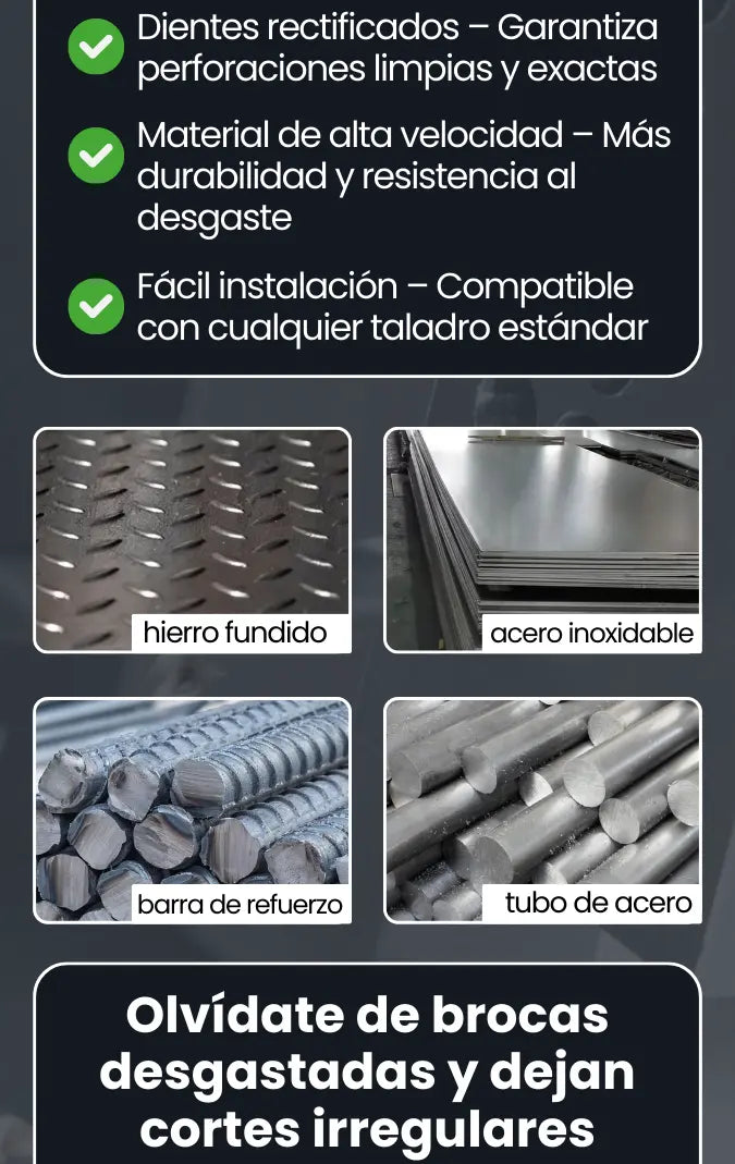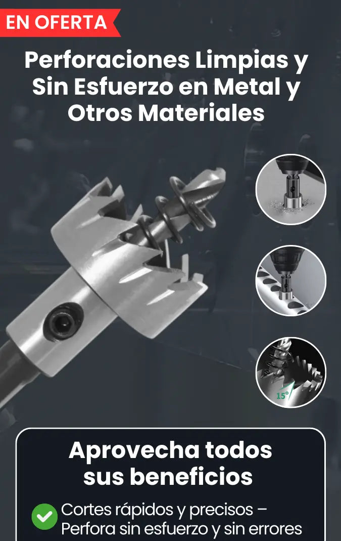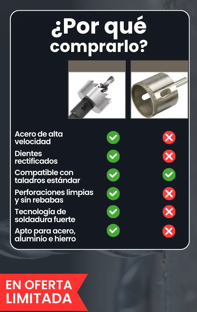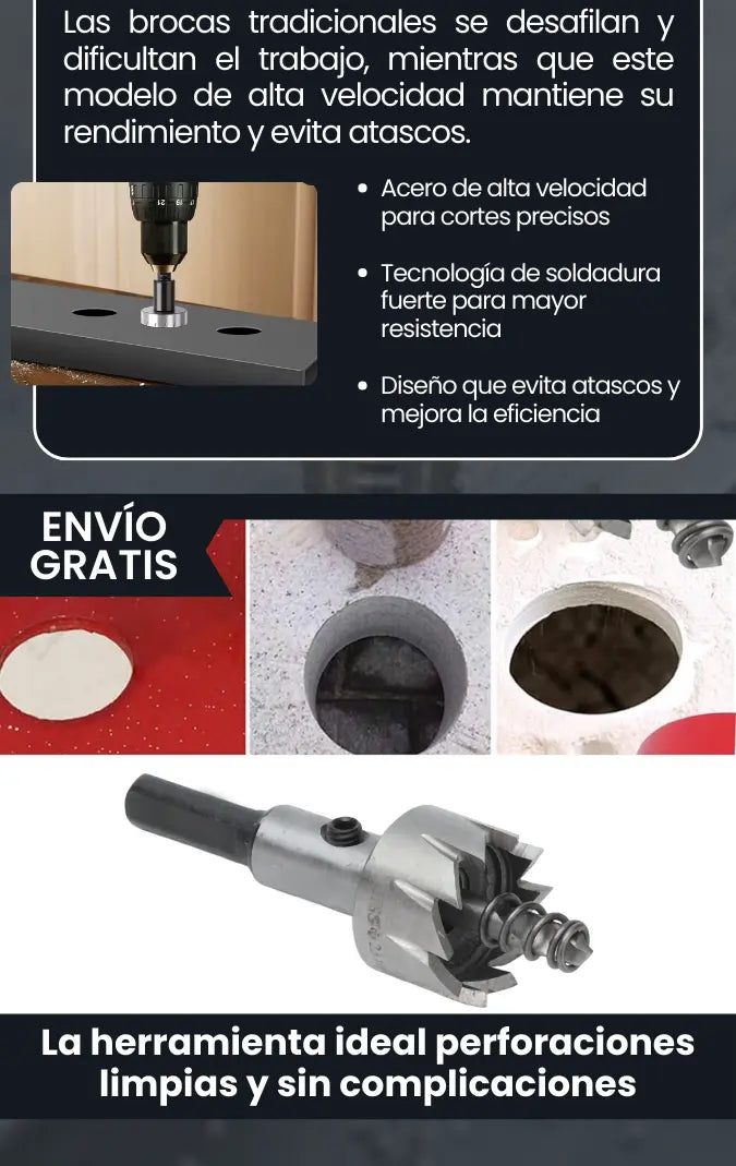 No, está fabricada con acero de alta velocidad para mayor durabilidad.