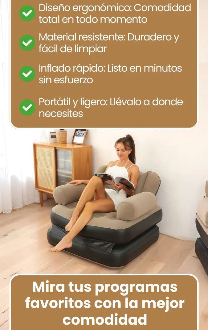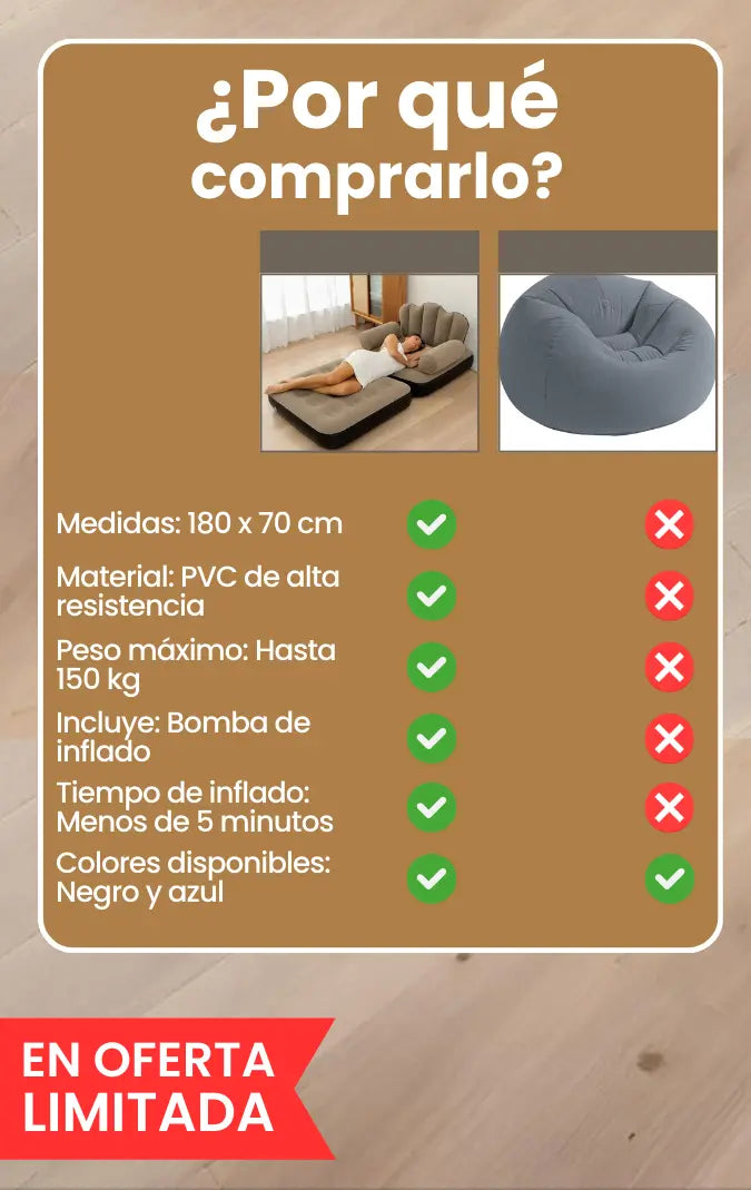 Aguanta hasta 150 kg, ideal para una o dos personas.